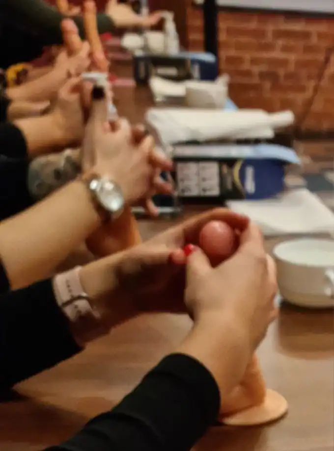 • Praktika, o ne tik teorija – visos dalyvės realiai išbandys masažo technikas ant falo imitatorių.